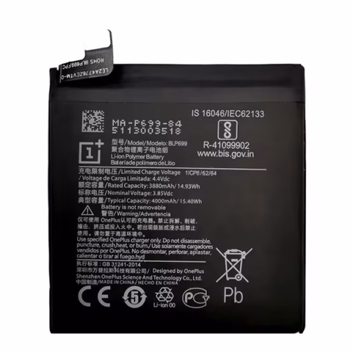 The original Battery for OnePlus 7T Pro (BLP745, 4085 mAh) is a high-quality replacement designed to restore optimal battery performance to your device. If your battery is draining quickly, failing to hold a charge, or no longer functioning properly, this genuine replacement ensures reliable power and long-lasting performance. With a capacity of 4085 mAh, it offers the same battery life and efficiency as the original, supporting all-day use with minimal charge interruptions. Built to meet the original specifications, this battery is easy to install and provides long-term durability, helping to maintain your OnePlus 7T Pro’s performance and reliability.