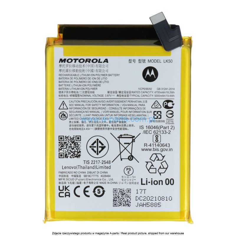 This original OEM battery is designed specifically for the Moto G60s, model LK50. It provides exceptional performance, durability, and a perfect fit for your device. As an authentic replacement part, this battery restores your phone’s power to full capacity, ensuring reliable usage throughout the day. Made with premium materials and safety-tested for performance, this genuine battery guarantees a seamless user experience. Ideal for those needing a dependable and long-lasting power solution for their Moto G60s.