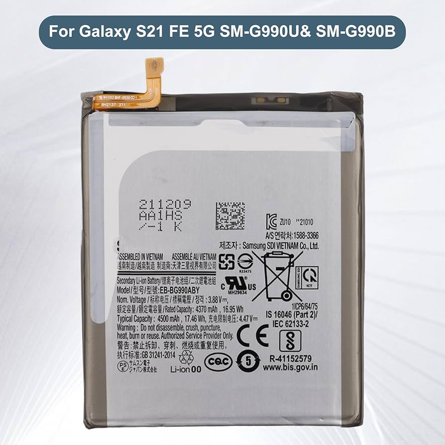 Genuine Samsung Galaxy S21 FE battery (Model: EB-BG990ABY) – original OEM replacement for consistent, safe, and reliable power.