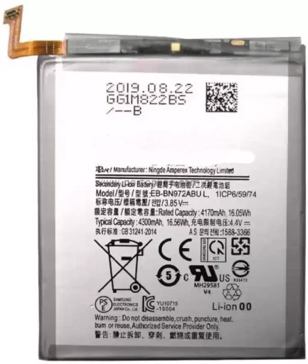 The Original Samsung EB-BN972ABU Battery is specifically designed for the Samsung Galaxy Note 10+, providing reliable and long-lasting power with its 4300mAh capacity. This genuine replacement battery ensures optimal performance and supports fast charging, making it ideal for heavy users. Manufactured with premium materials, it offers protection against overcharging, overheating, and short circuits, ensuring safety and durability. Perfectly compatible with the Galaxy Note 10+, this battery restores your device’s efficiency and power backup, making it an ideal replacement for worn-out or damaged batteries. Keep your phone running smoothly with this high-quality Samsung original battery.