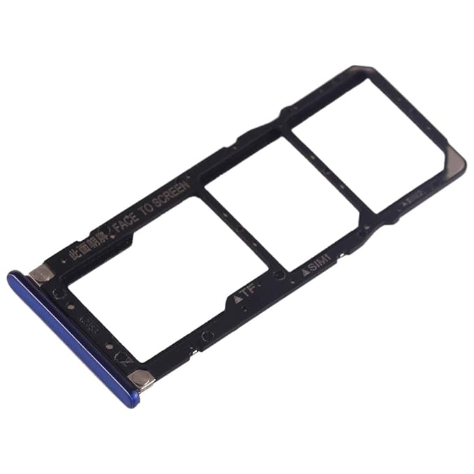 Original blue SIM card tray for Xiaomi Mi Play, ensuring a secure fit for SIM and microSD cards with a factory-accurate design and finish.